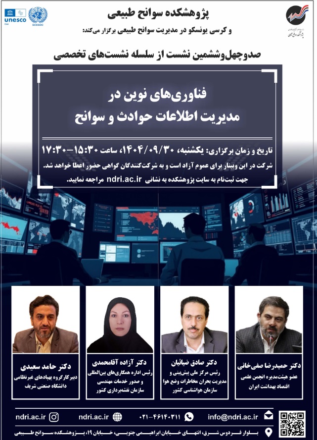 نشست فن آوری نوین در مدیریت اطلاعات حوادث وسوانح ۳۰ آذر ۱۴۰۴ | ۱۲:۰۴ کد : ۵۷۱۴۹ اطلاعیه ارسال به دیگران نام شما ایمیل شما ایمیل دریافتکننده ارسال انصراف تعداد بازدید:۲۰۸ دعوتنامه نشست فن آوری نوین در مدیریت اطلاعات حوادث وسوانح